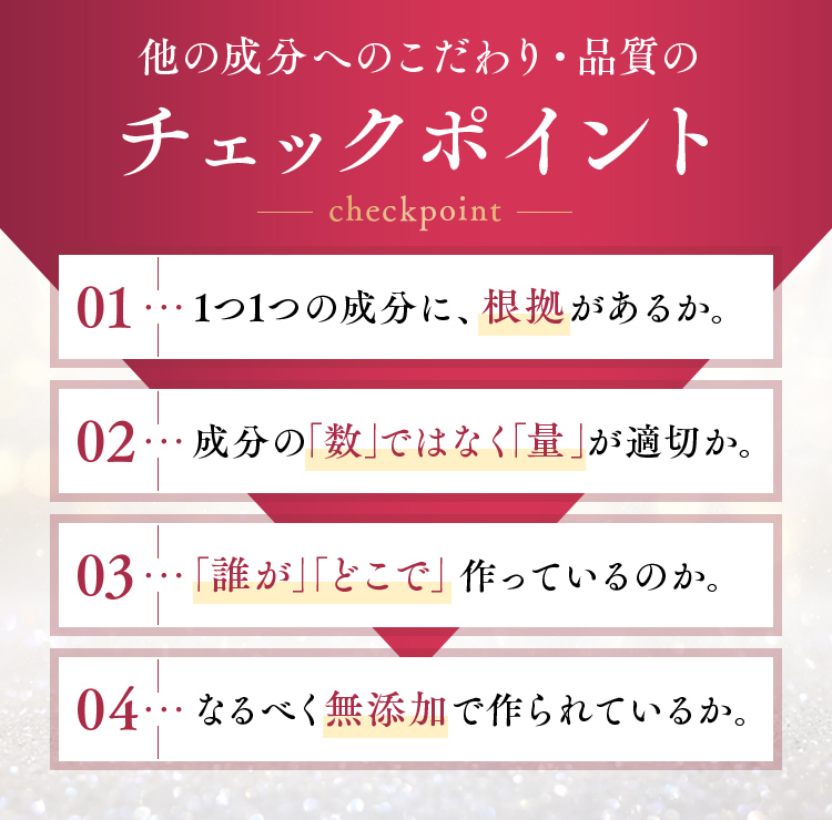 その他の成分へのこだわりや、全体の品質も非常に大切です。