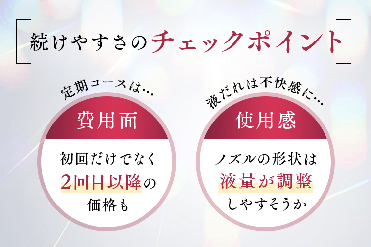 無理なく続けやすいのは、特別価格が適用されることが多い「定期コース」ですが、なかには初回価格が思いきり安く、2回目以降の購入価格が跳ね上がる場合があるので、十分注意しましょう。