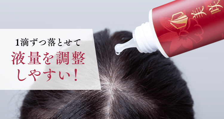 今までに使った育毛剤は、スプレーの勢いが強すぎて液だれしたり、ドバドバ出てきて調整しづらかったのに比べ、『美咲蘭』は調整しやすく、また先端が頭皮に当たっても痛くないので安心です。