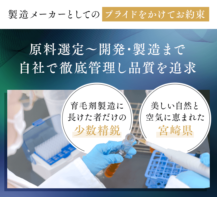 先述の通り、『美咲蘭』は実績のある育毛剤の製造メーカーが、原料選定〜製造までを社内一貫で行っているそう。