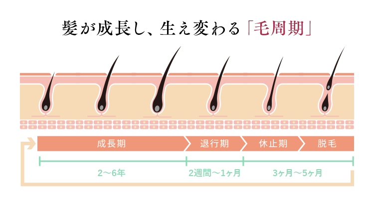 なぜなら、髪には「毛周期」があり、数ヶ月で劇的に髪が変わる、というわけではないためです。